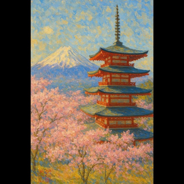 【いまを歴史にする AIアート】桜富士山日本20枚限定A4額●がんどうあつし制作