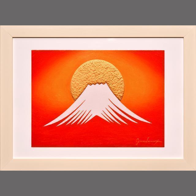 【少し訳あり】ギャラリー展示使用品●朱色金太陽日の出赤富士山●がんどうあつし制作 | GANDEAUX がんどうあつし 絵画 Art/Painting Official Gallery on BASE