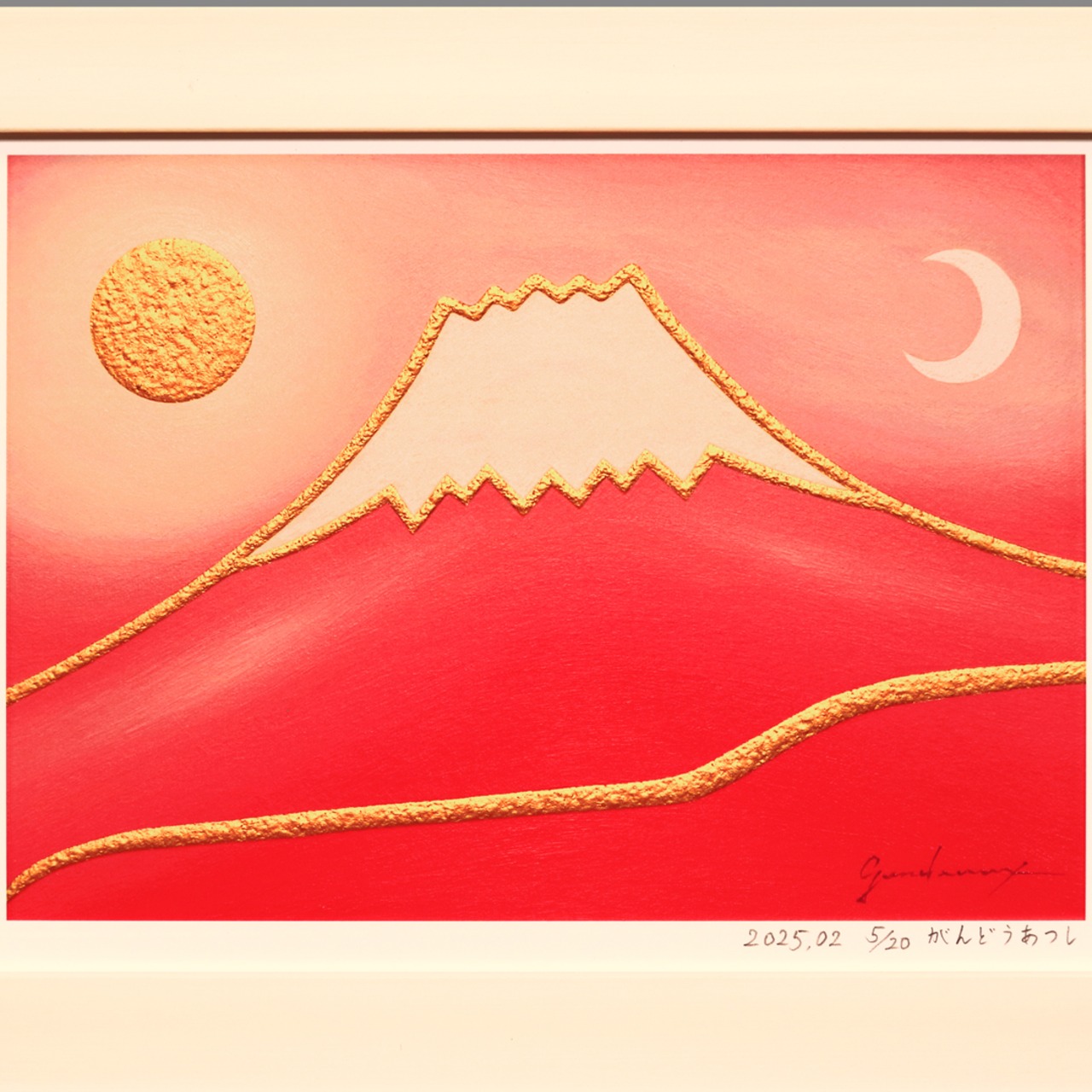 富士山は古来より、長寿や繁栄の象徴とされてきました。この作品が、お部屋を明るく華やかに彩るアートとなることを願っております。