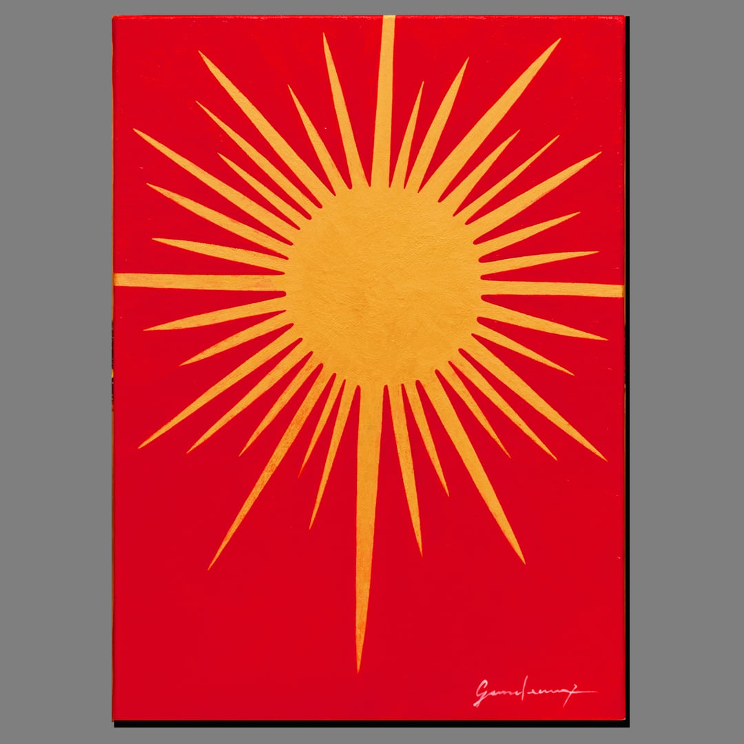 そのまま飾る、光のみなもと☆『金の太陽』がんどうあつし肉筆絵画F4活力元気明るい
