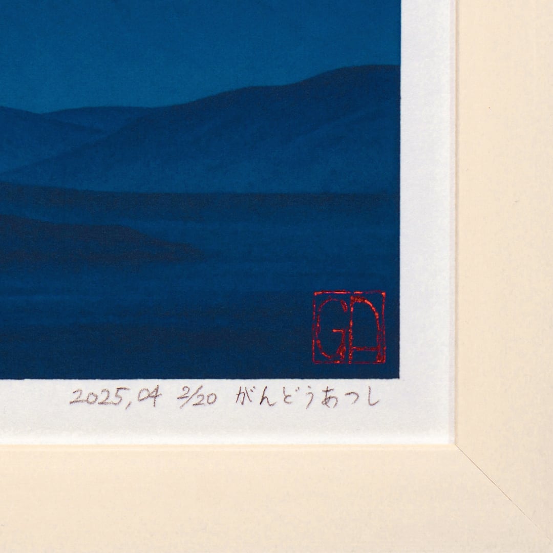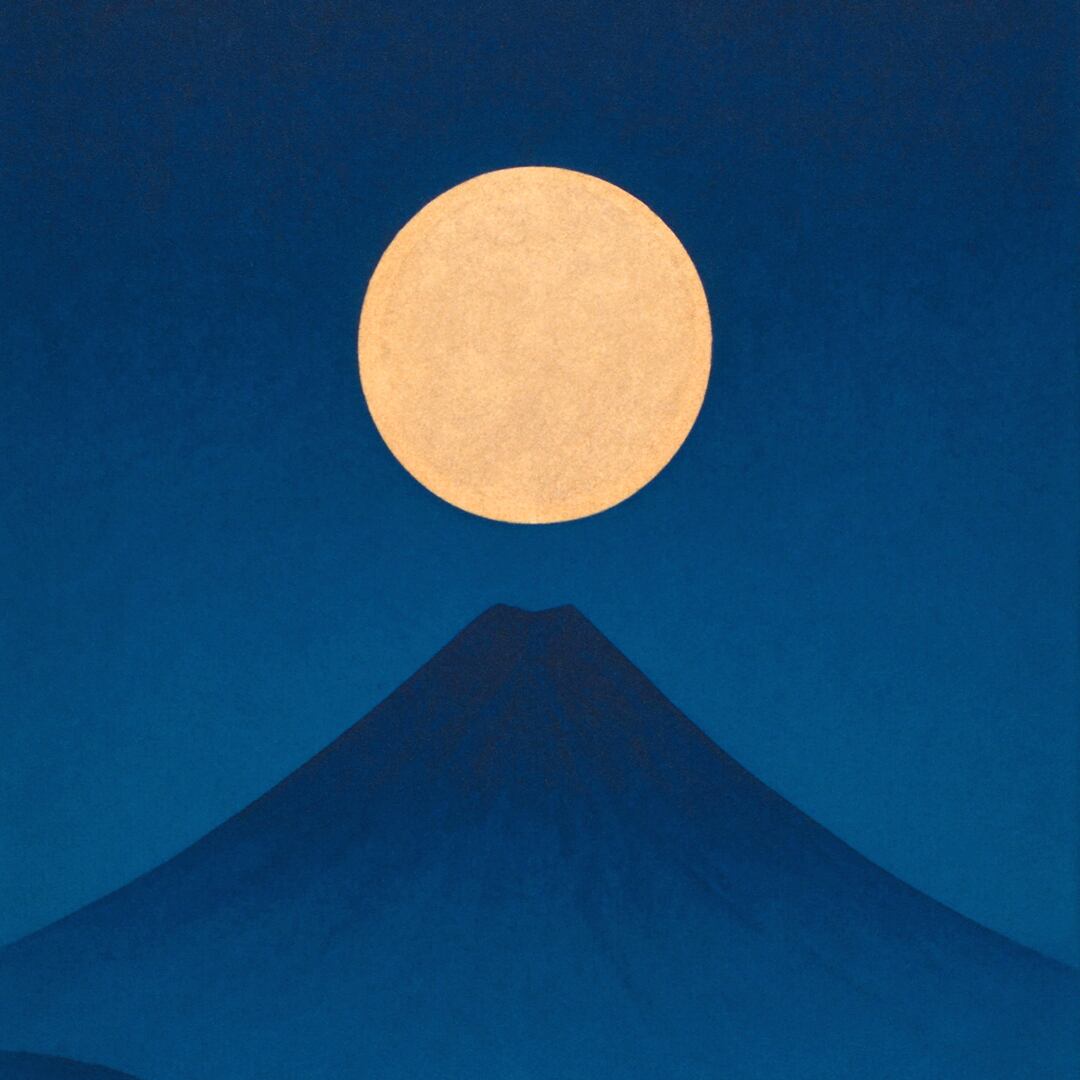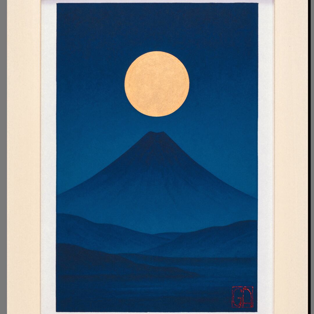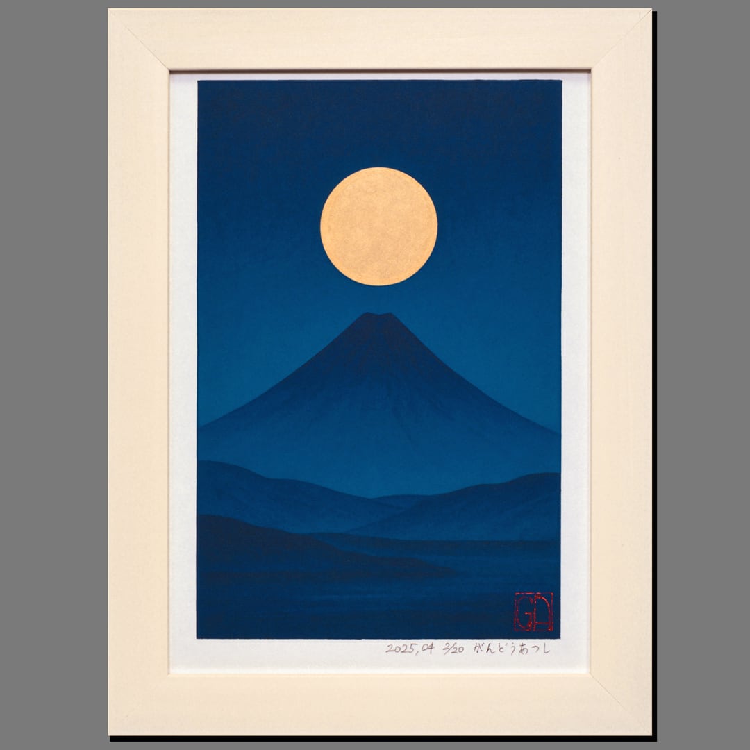 静寂の青『満月と夜の富士山』●AIアート和紙20枚限定A4額装品がんどうあつし作 | GANDEAUX がんどうあつし 絵画 Art/Painting Official Gallery on BASE