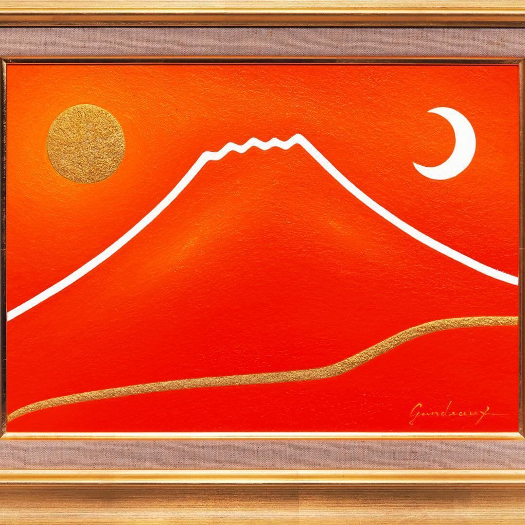 ●『朱に染まる赤富士』●がんどうあつし油絵画●F4号額縁付富士山真作山梨富士吉田発送