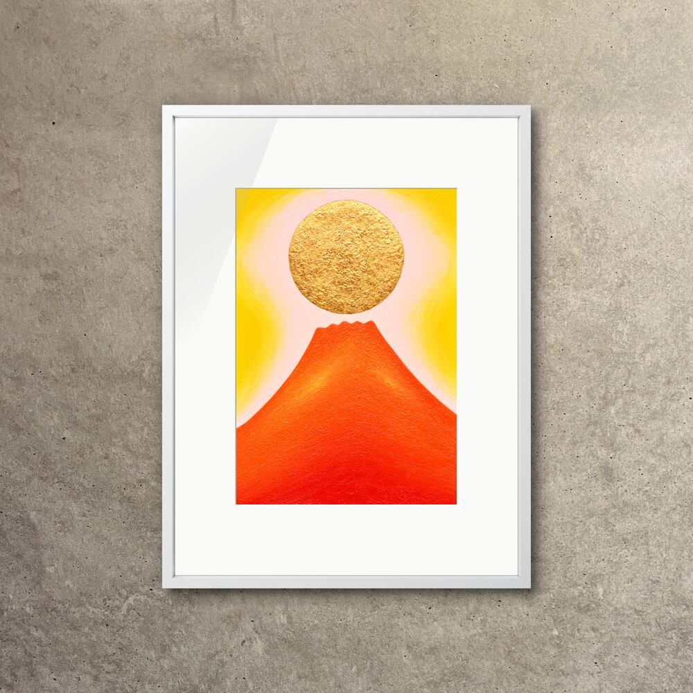 ミニマルな赤富士、油絵作品です。