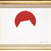 肉筆油絵●【日の出の太陽と白富士】がんどうあつし絵画F4号額縁付富士山朝日本