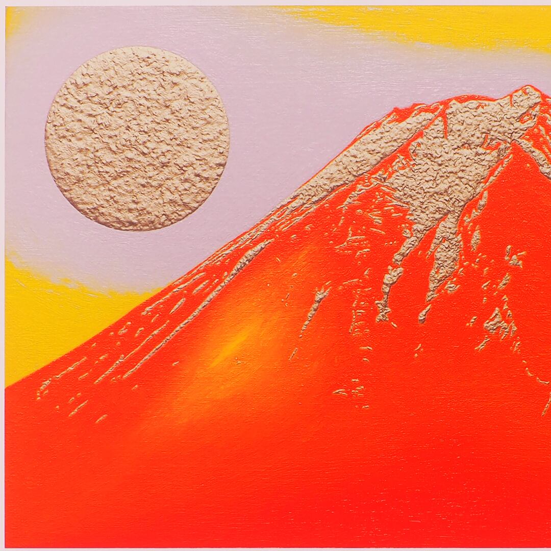 富士山は古来より、長寿や繁栄の象徴とされます。赤富士をモチーフに、明るく力強い印象を大切に制作しました。